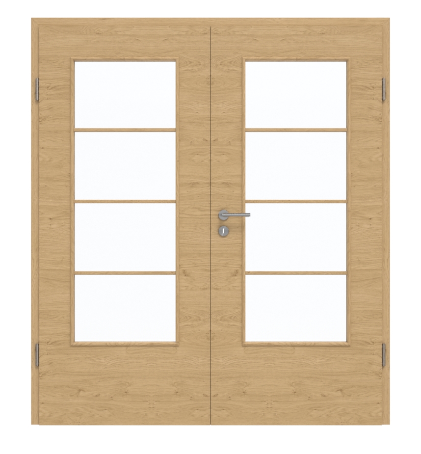 Ze względu na klasyfikację w grupie obciążenia M te drzwi dwuskrzydłowe nadają się zarówno do budynków mieszkalnych, jak i biurowych. Rdzeń z litej płyty wiórowej zapewnia jej stabilność. W zestawie znajdują się, oprócz dwóch skrzydeł drzwiowych, również odpowiednia ościeżnica, zawiasy oraz zamek z kluczem.