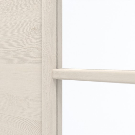 Delikatne ramy szprosowe dzielą przeszklenie równomiernie na dziewięć mniejszych prostokątów. Beżowe odcienie i drobne usłojenia tworzą na dekorze HPL Authentic Perl DQ przyjazną atmosferę o naturalnym wyglądzie. Odporny na uderzenia i zarysowania laminat jest łatwy w czyszczeniu.