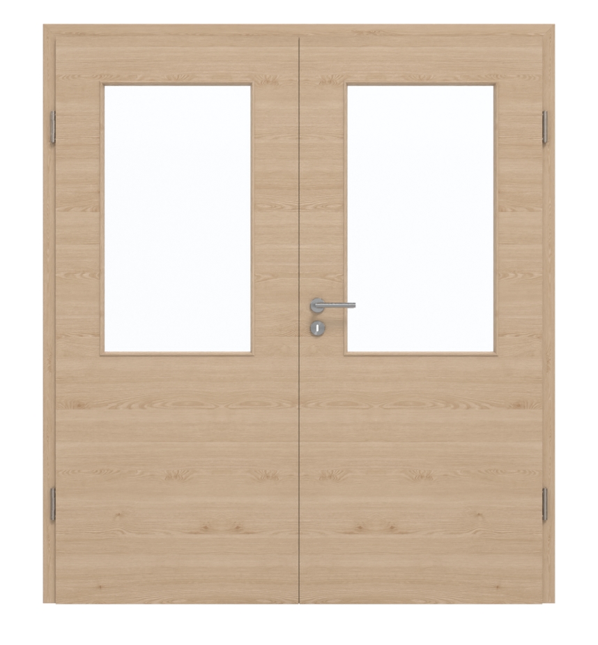 Dzięki klasie wytrzymałości M dwuskrzydłowe drzwi są przeznaczone do użytku w pomieszczeniach prywatnych lub biurowych. Stabilność zapewnia warstwa środkowa z pełnej płyty wiórowej. W cenie ościeżnica, zamek i zawiasy.