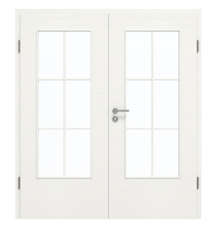 Te dwuskrzydłowe drzwi sprawdzają się zarówno w pomieszczeniach prywatnych, jak i w biurze. Dzięki warstwie środkowej z płyty wiórowej odpowiada ona klasie obciążenia M. Oprócz skrzydeł drzwiowych w zestawie znajdują się również ościeżnica, zamek i zawiasy.