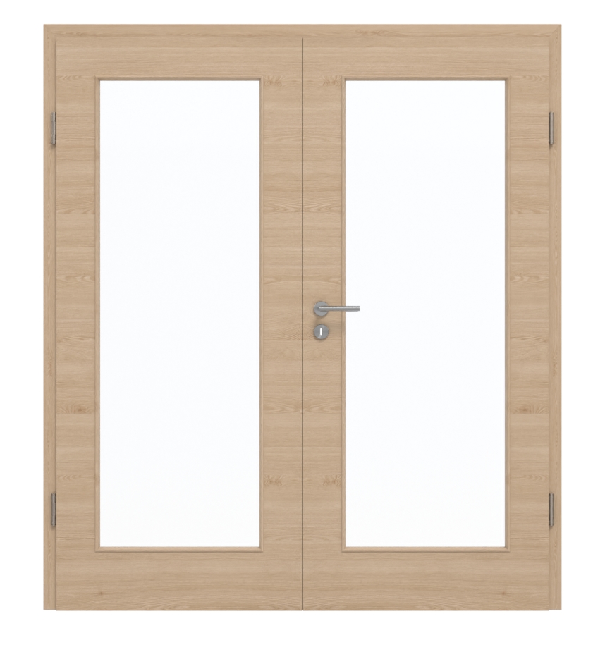 Te dwuskrzydłowe drzwi sprawdzają się zarówno w pomieszczeniach prywatnych, jak i w biurze. Dzięki warstwie środkowej z płyty wiórowej odpowiada ona klasie obciążenia M. Podana cena obejmuje oba skrzydła drzwiowe, odpowiednią ościeżnicę, zamek z kluczem wielobarwnym oraz zawiasy.