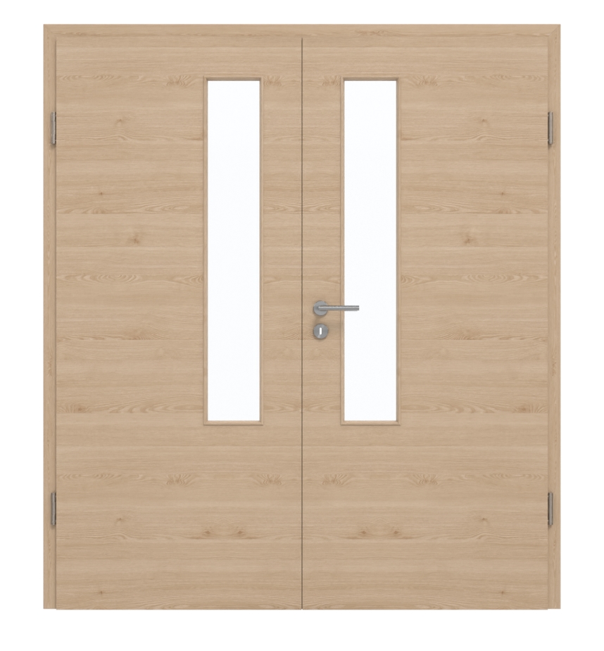 Drzwi dwuskrzydłowe doskonale nadają się zarówno do pomieszczeń prywatnych, jak i biurowych. Posiadają rdzeń z pełnej płyty wiórowej i zostały przetestowane w grupie obciążenia M. W zestawie znajdują się skrzydło ruchome i skrzydło stałe, ościeżnica, zawiasy i zamek bębenkowy.
