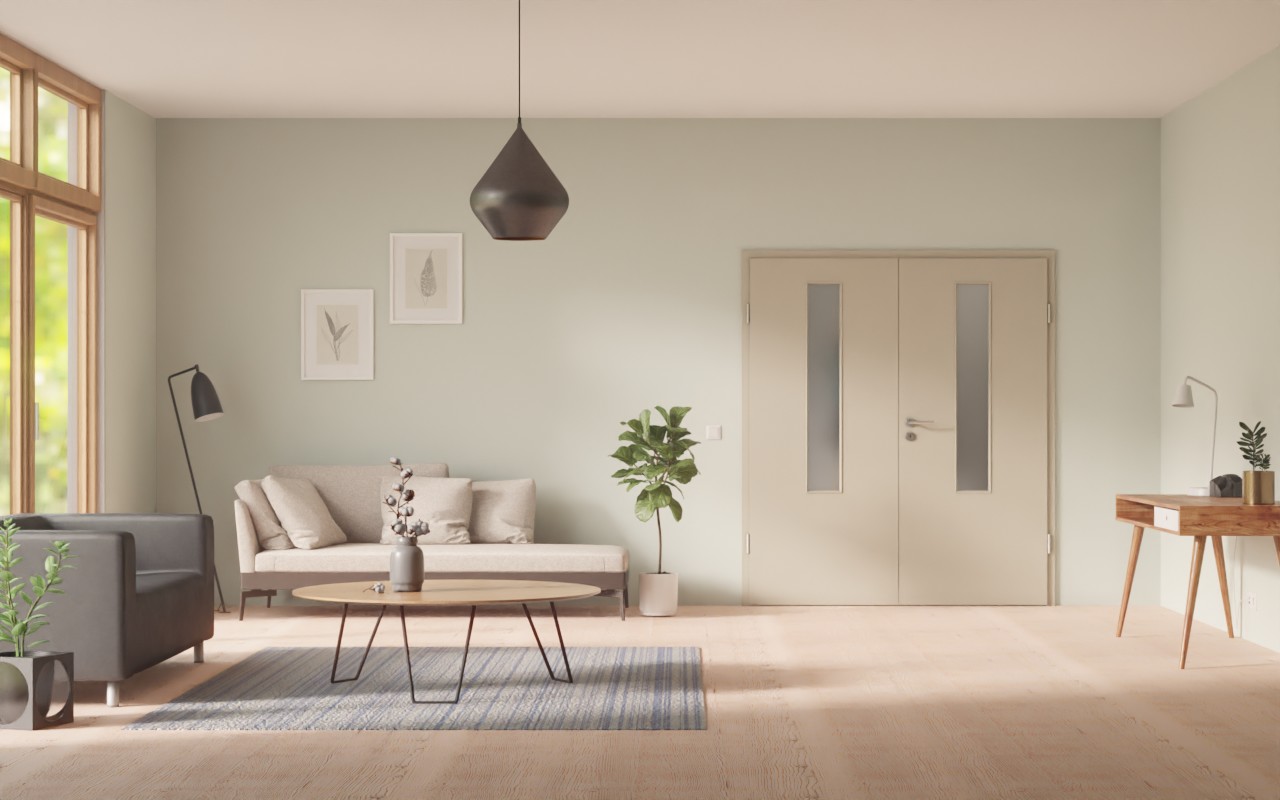 Nowa atrakcja w Państwa placówce: Drzwi dwuskrzydłowe z LA-5 na środku, matowe, w kolorze szarego jedwabiu 7044 firmy Garant łączą w sobie harmonijny design z najwyższą funkcjonalnością.