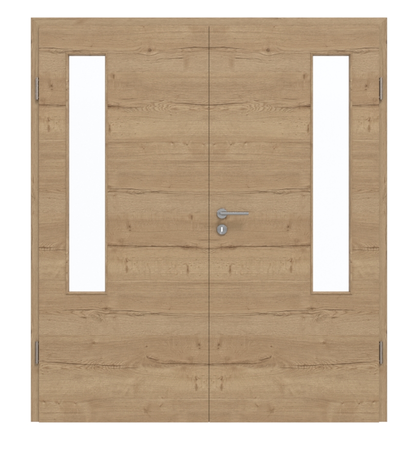 Dzięki dopuszczeniu do grupy obciążenia M drzwi podwójne nadają się zarówno do budynków mieszkalnych, jak i biurowych. Rdzeń z pełnej płyty wiórowej zapewnia jej stabilność. Ościeżnica, zawiasy i zamek na klucz piórowy są już wliczone w cenę.