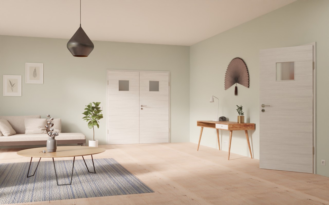 W górnej części drzwi znajduje się kwadratowe wycięcie na szybę. Nowoczesną atmosferę tworzy świeży, szary odcień Authentic Grigio DQ. Powierzchnia HPL jest odporna na zabrudzenia, a jednocześnie odporna na zarysowania, ścieranie i uderzenia.