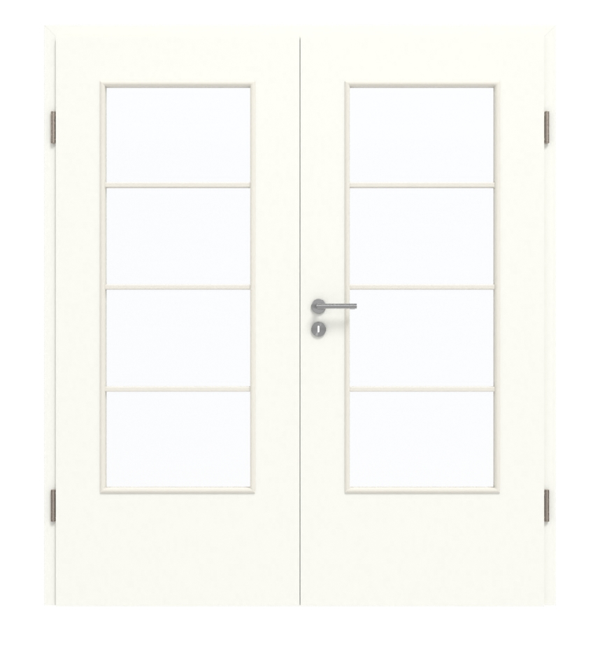 Dzięki dużym przeszkleniom drzwi przepuszczają światło z jednego pomieszczenia do drugiego. Delikatne pręty dzielą szybę na cztery ułożone jedna nad drugą sekcje. Skrzydło drzwiowe z wykończeniem Premium White z łatwością wkomponuje się w wystrój Twojego domu i zachwyca jedwabistą fakturą. Powierzchnia z płyty HPL jest odporna na zabrudzenia, a jednocześnie odporna na ścieranie, zarysowania i uderzenia.