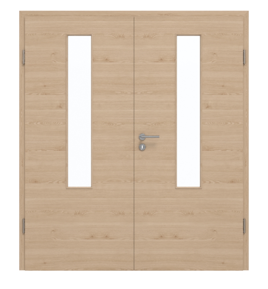 Drzwi dwuskrzydłowe mają środkową warstwę z płyty wiórowej. Posiada certyfikat klasy wytrzymałości M i jest przeznaczona do użytku w pomieszczeniach prywatnych lub biurowych. Ościeżnica, zawiasy i zamek na klucz są już zintegrowane w cenie.