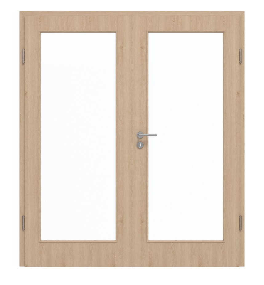 W rdzeniu drzwi dwuskrzydłowe wykonane są z płyty wiórowej pełnej. Została ona przetestowana w grupie obciążenia M i dlatego drzwi mogą być stosowane w pomieszczeniach prywatnych lub biurowych. W cenie zawarte są również ościeżnica, zawiasy i zamek.