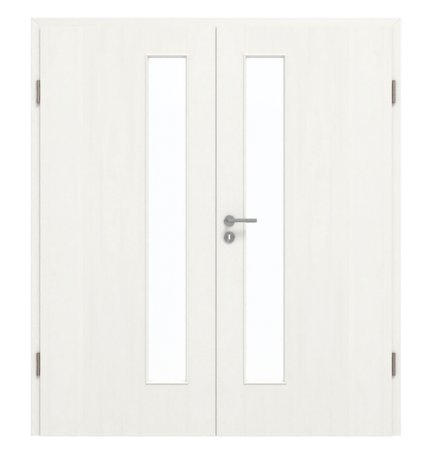 Dzięki rdzeniowi z pełnej płyty wiórowej drzwi dwuskrzydłowe nadają się zarówno do pomieszczeń prywatnych, jak i biurowych. Zostały przetestowane w grupie obciążenia M. Aby całość była spójna, cena obejmuje nie tylko skrzydła drzwiowe, ale także ościeżnicę, zawiasy i zamek.