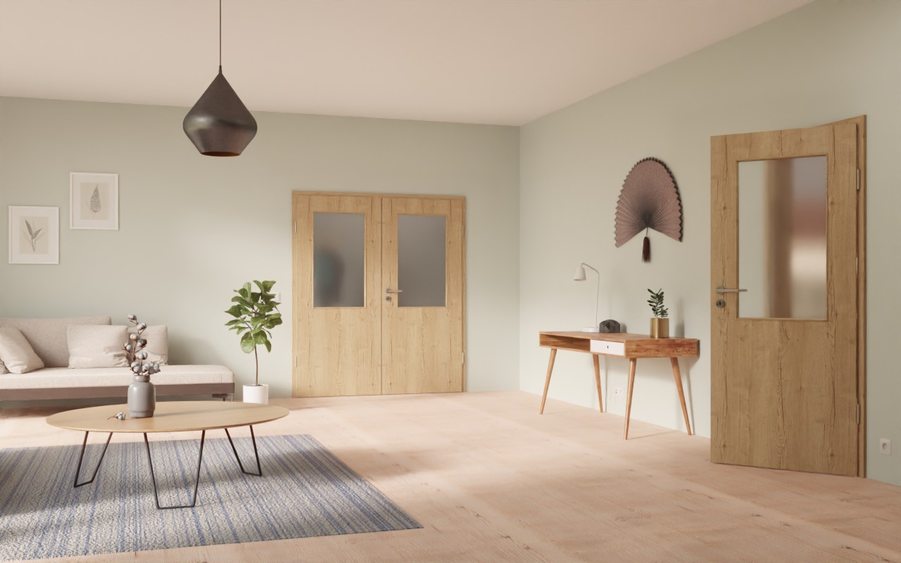 Stylowe podwójne drzwi wewnętrzne z wytrzymałym dekorem HPL: