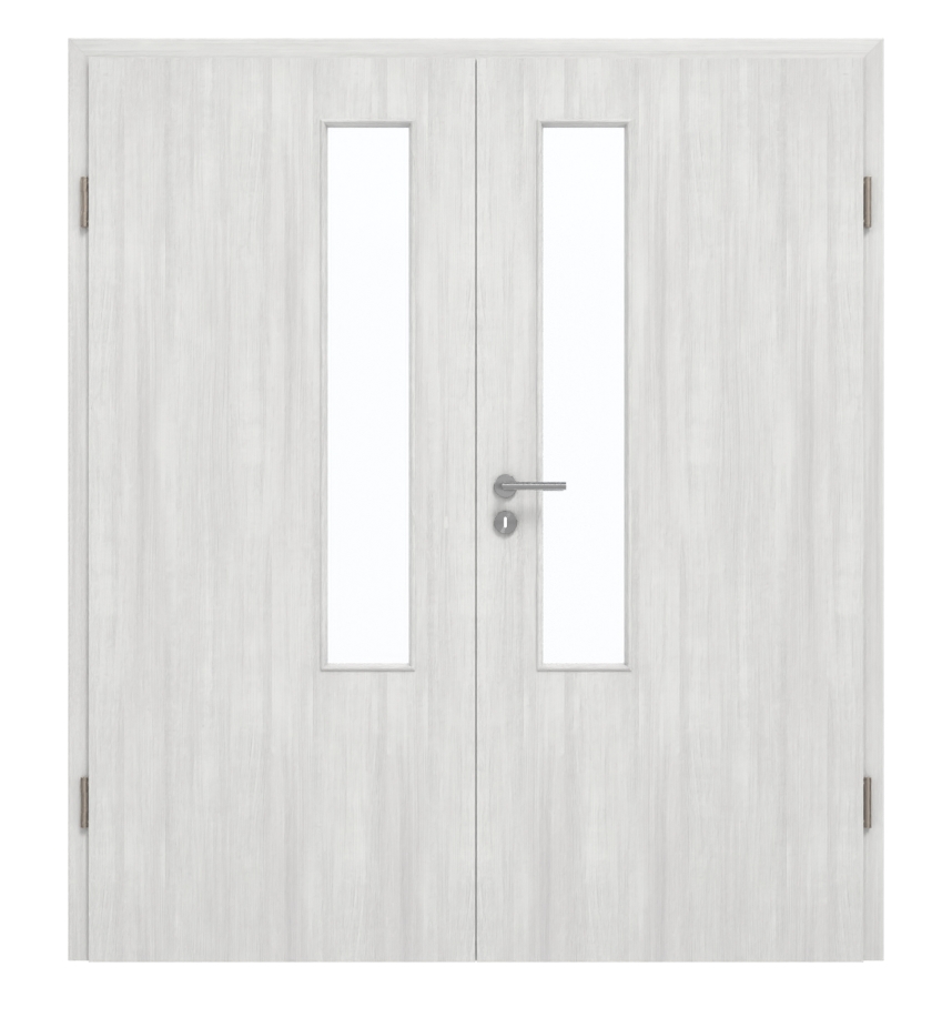 Drzwi podwójne mają rdzeń z pełnego wióra. Są certyfikowane w grupie obciążeniowej M i przeznaczone do użytku w pomieszczeniach prywatnych lub biurowych. Aby całość była zgodna, cena obejmuje nie tylko skrzydła drzwi, ale także ościeżnicę, zawiasy i zamek.