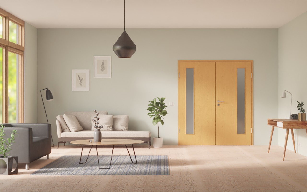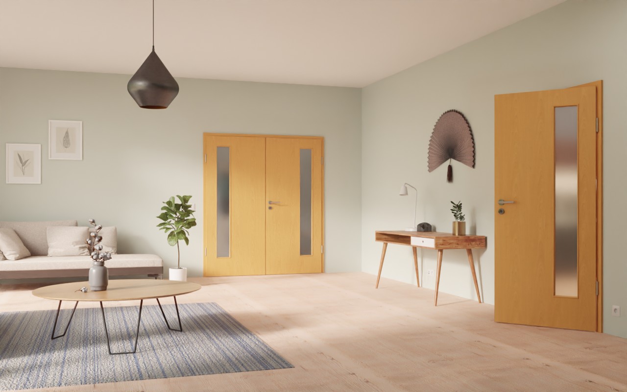 Stylowe drzwi podwójne z łatwą w pielęgnacji warstwą HPL: