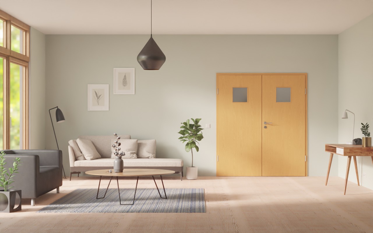 Stylowe drzwi podwójne z łatwą w pielęgnacji okleiną HPL: