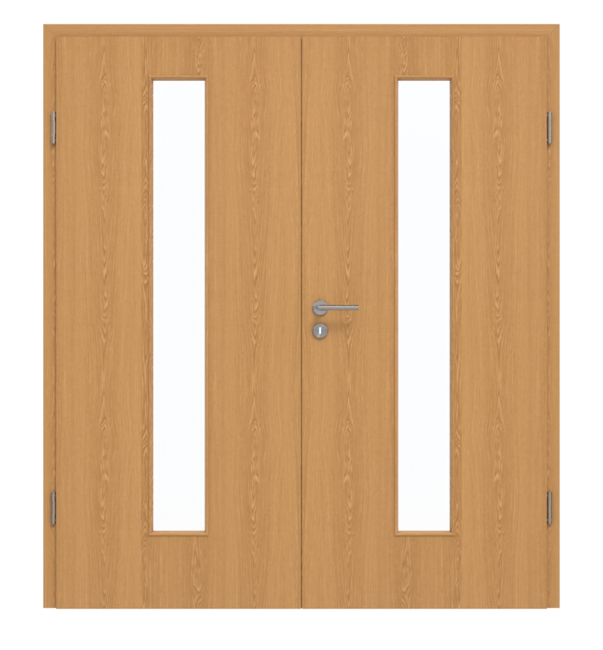 Rdzeń podwójnych drzwi wykonany jest z pełnego wióru. Zostały one przetestowane w grupie obciążeniowej M i mogą być stosowane zarówno w budynkach mieszkalnych, jak i biurach. Cena obejmuje skrzydła przejściowe i stojące, ościeżnicę, zawiasy oraz zamek wielozadaniowy.