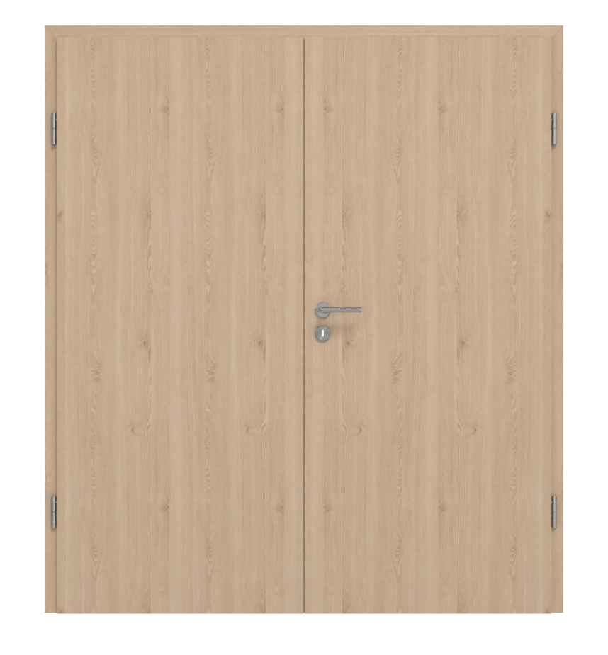 Drzwi dwuskrzydłowe nadają się zarówno do pomieszczeń prywatnych, jak i biurowych. Dzięki rdzeniowi wykonanemu z płyty wiórowej lub płyty pełnej wiórowej spełniają one wymagania grupy obciążenia M. Cena obejmuje skrzydło ruchome i skrzydło stałe, ościeżnicę, zawiasy i zamek wpustowy.