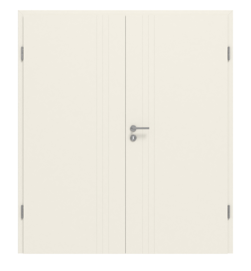 Robustne drzwi podwójne w ekologicznej białej powłoce z eleganckim wzorem rowków: