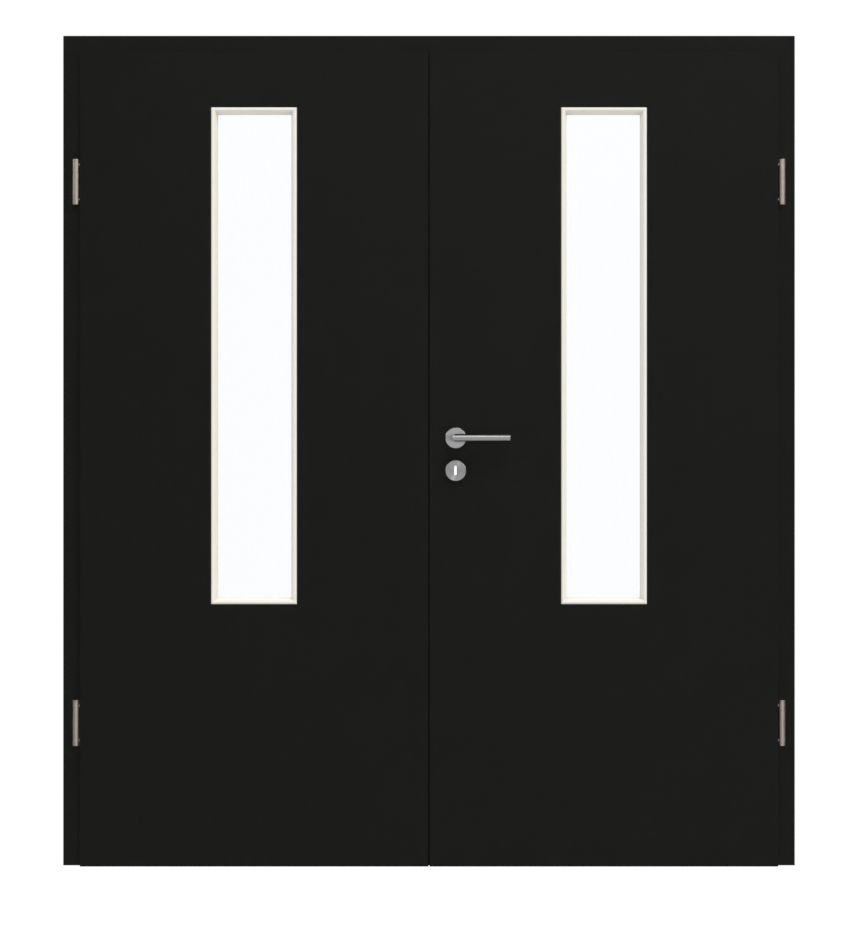 Rdzeń podwójnych drzwi wykonany jest z pełnej płyty wiórowej. Zgodnie z klasą użytkowania M może być stosowana w pomieszczeniach prywatnych lub komercyjnych. W zestawie oprócz skrzydła ruchomego i skrzydła stałego znajduje się również odpowiednia ościeżnica, zawiasy i zamek na klucz.