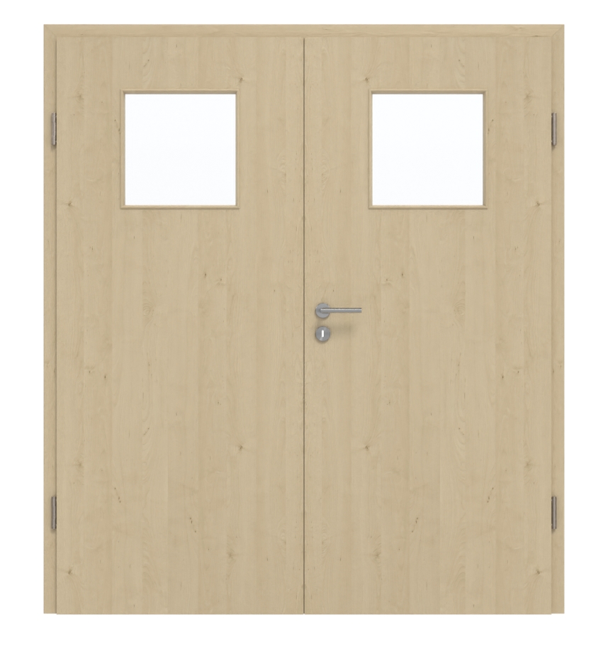 Drzwi dwuskrzydłowe, przetestowane w grupie obciążenia M, mogą być stosowane zarówno w pomieszczeniach prywatnych, jak i biurowych. Ich warstwa środkowa jest wykonana z pełnej płyty wiórowej. Oprócz skrzydeł drzwiowych w zestawie znajdują się również ościeżnica, odpowiednie zawiasy i zamek na klucz.