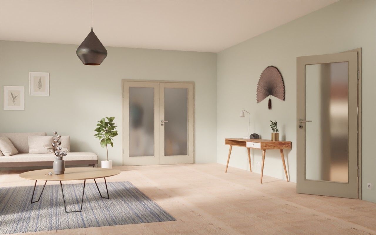 Wybierz te drzwi dwuskrzydłowe, aby zapewnić większą przestronność i jasność w pomieszczeniu.