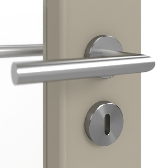 Dzięki dużemu przeszkleniu światło dzienne dociera nawet do pozbawionego okien korytarza. Ultramatowy szary nadaje modelowi piękne wykończenie wizualne. Powierzchnia G-TEC skutecznie zapobiega pozostawianiu odcisków palców.
