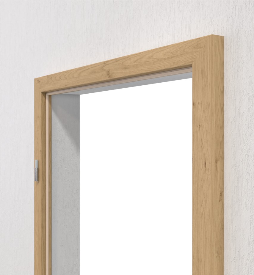 Komfortowy ramowy system dla drzwi przeciwpożarowych z powłoką w autentycznym dębie: