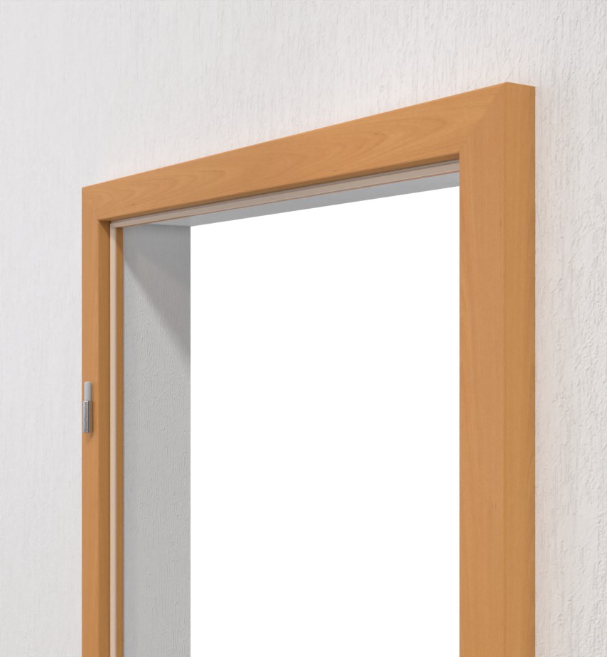 Rama maskująca ma zaokrąglone krawędzie oraz połączenie narożne na styk. W zestawie znajdują się następujące komponenty: blacha zamykająca z zabezpieczeniem kątowym, element mocujący do zawiasów obiektowych oraz wciągnięty, elastyczny profil uszczelniający.
