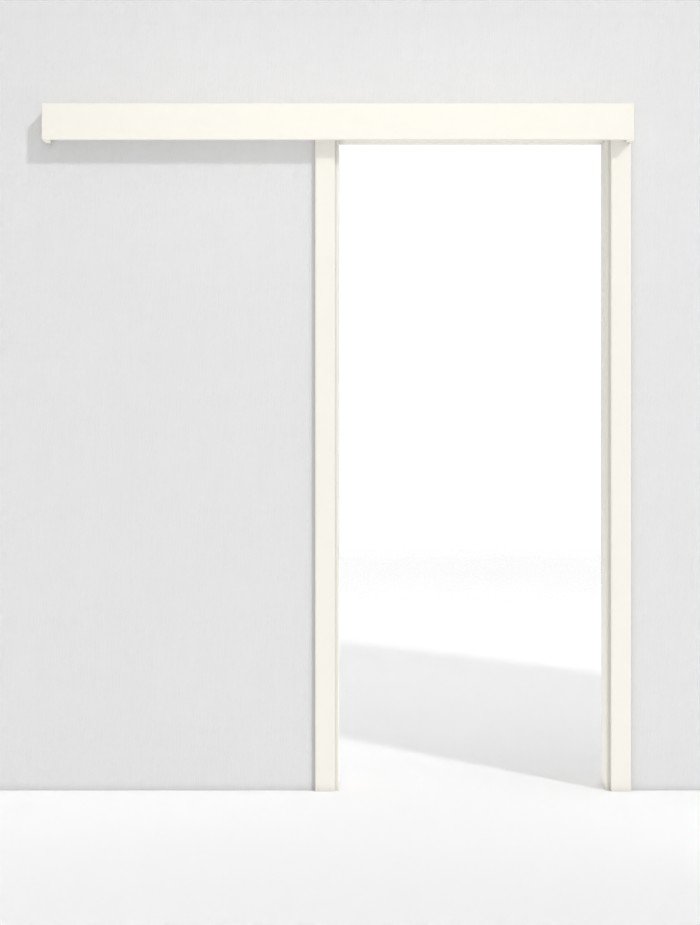 Oszczędzający miejsce system drzwi przesuwnych w kolorze Pearl White wraz z ościeżnicą do drzwi przesuwnych.