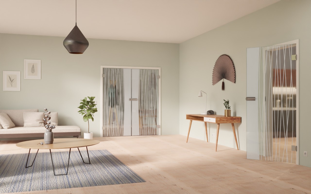 Wysokiej jakości drzwi szklane z odpornym na zarysowania motywem sitodrukowym: