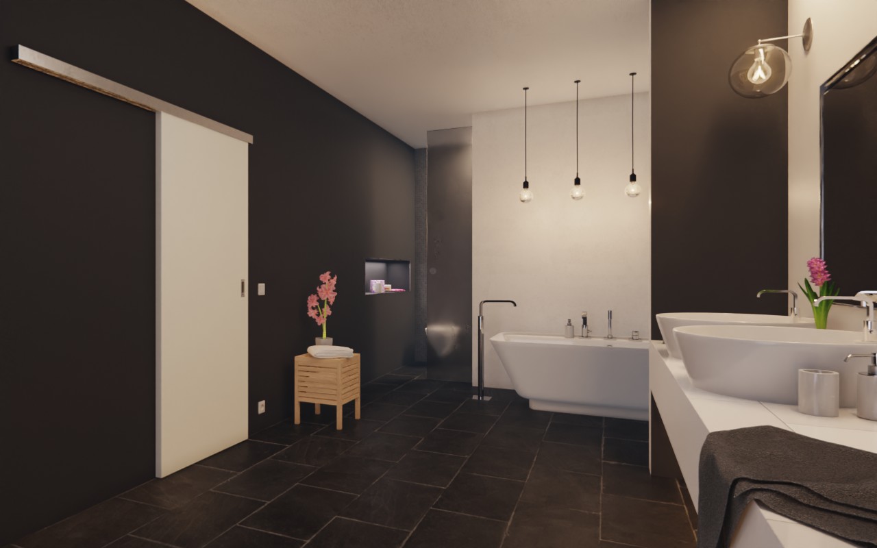 Innowacyjna odporność na wilgoć przy znacznej oszczędności miejsca: Drzwi przesuwne do pomieszczeń wilgotnych w kolorze 9417-60 Snow White producenta Garant przekonują swoją wytrzymałością, komfortem i elegancją.