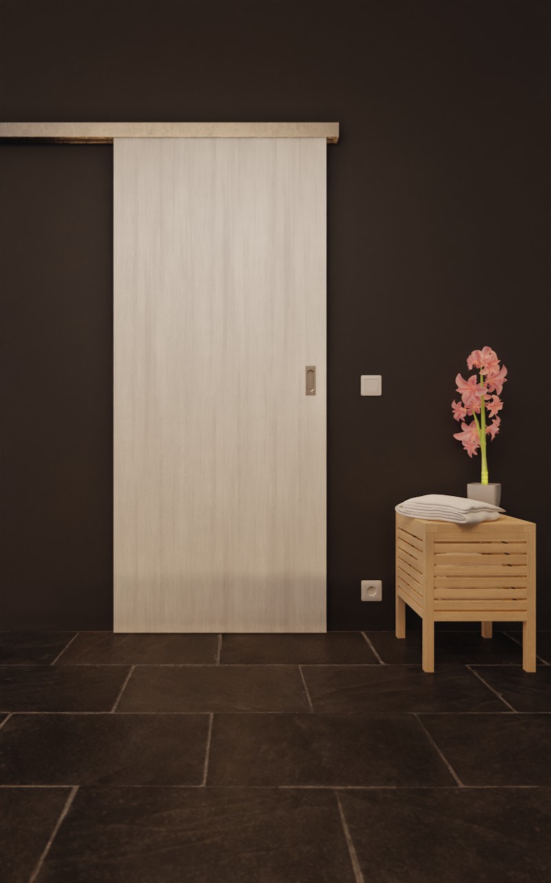 Codzienne uderzenia nie robią wrażenia na skrzydle drzwi z rdzeniem z płyty wiórowej. Podczas gdy kwadratowy uchwyt z owalnym chwytem idealnie dopełnia wygląd drzwi przesuwanych, rowek prowadzący zapewnia wygodne użytkowanie modelu.