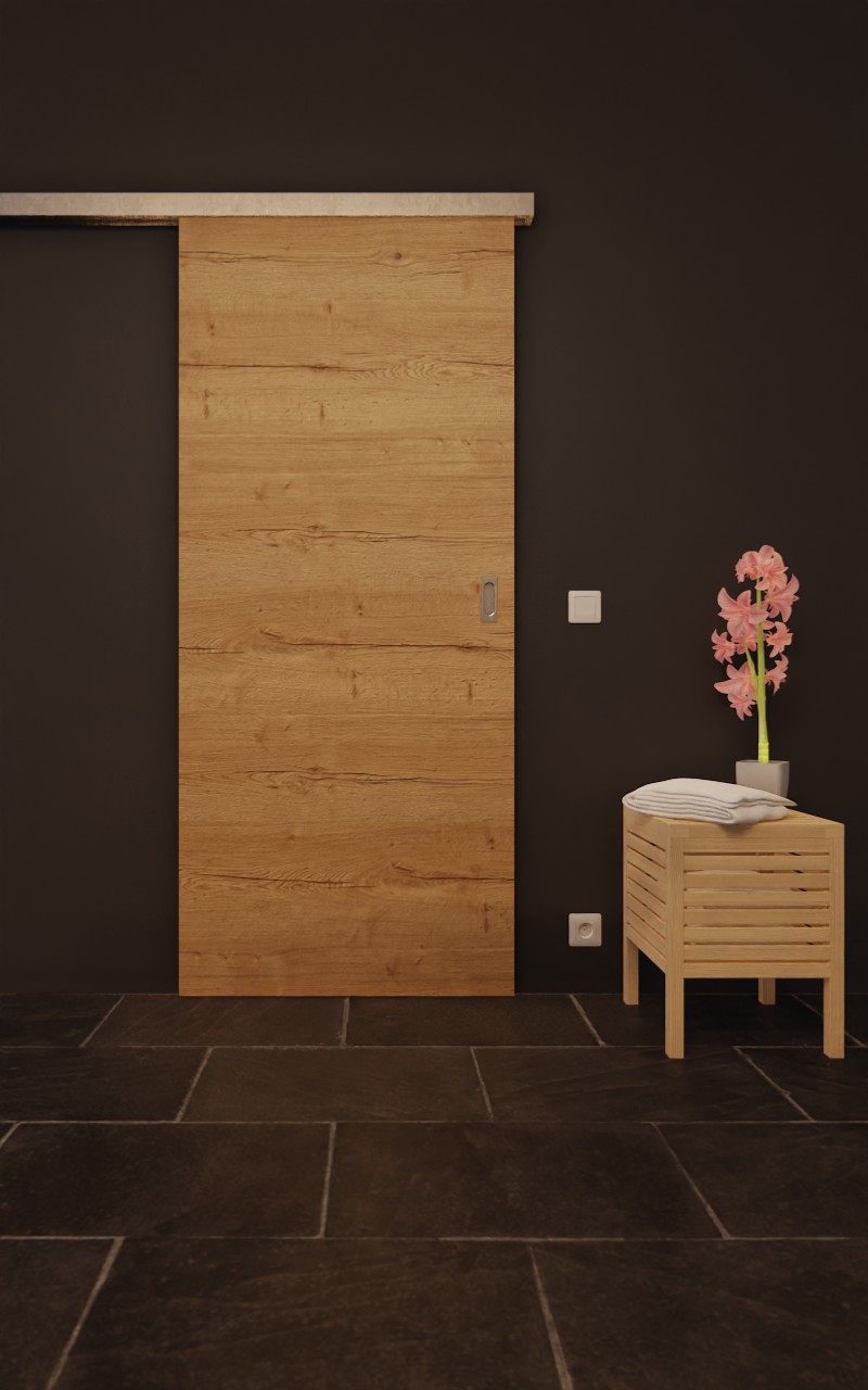 Dzięki płycie wiórowo-otworowej, która jest wbudowana w rdzeń skrzydła drzwiowego, nie musisz martwić się o codzienne uderzenia. Dzięki dołączonemu rowkowi prowadzącemu po podłodze drzwi przesuwne można niezawodnie przesuwać. W zestawie znajduje się prostokątny uchwyt wpuszczany muszlowy o owalnym kształcie, co gwarantuje harmonijny design drzwi.