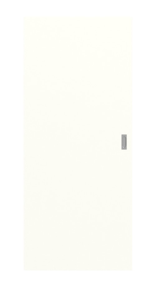 Drzwi przesuwne do pomieszczeń wilgotnych w kolorze biel kryształowa z ładnym uchwytem wpuszczanym muszlowym.