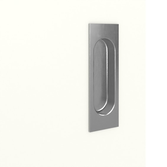• Prostokątny uchwyt wpuszczany muszlowy z owalnym zagłębieniem w komplecie