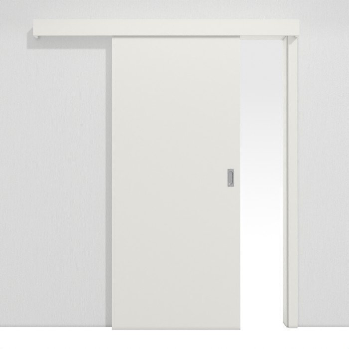 Drzwi przesuwne w ponadczasowej bieli pasują do każdego wystroju wnętrza. Dzięki jasnej kolorystyce drzwi te nadają się również do ciemnych wnętrz. Materiał powierzchniowy wykonany jest z łatwego w pielęgnacji i wytrzymałego CPL.