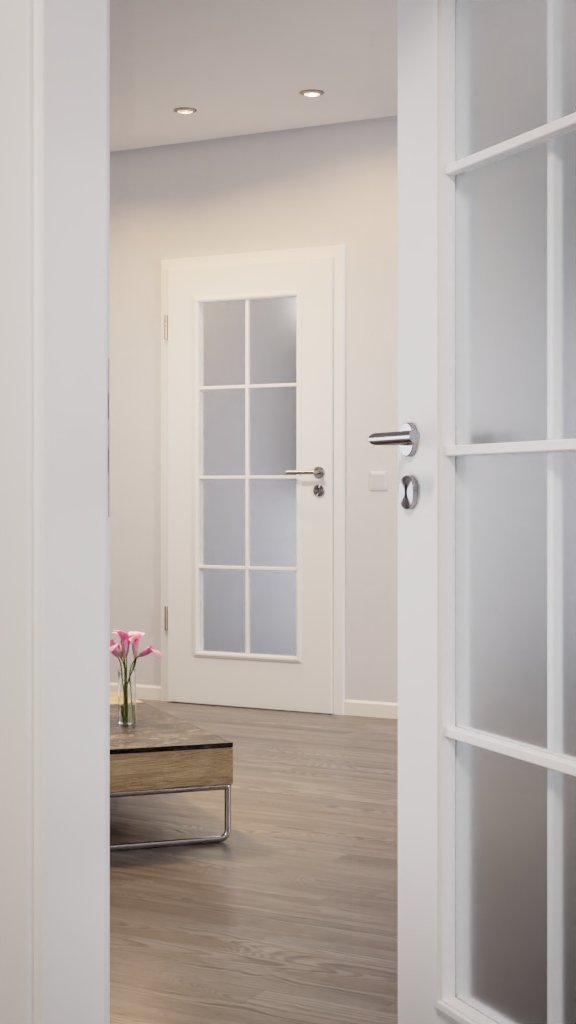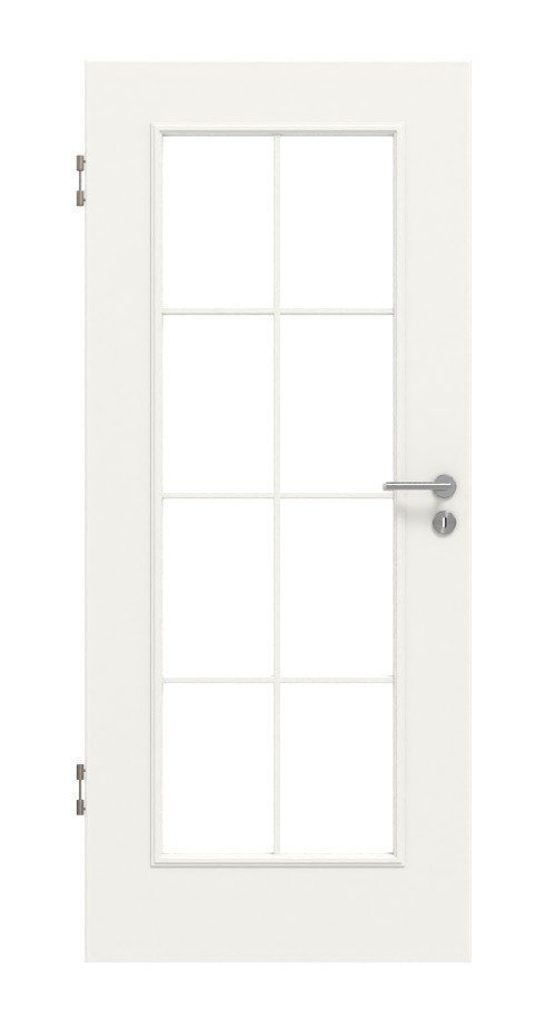 Elegancka listwa profilowana nadaje drzwiom klasyczny wygląd. Dzięki zastosowanym szprosom otwór szklany wygląda wyjątkowo elegancko. Szlachetne białe wykończenie w kolorze RAL 9010 lub RAL 9016 nadaje drzwiom nowoczesny wygląd.
