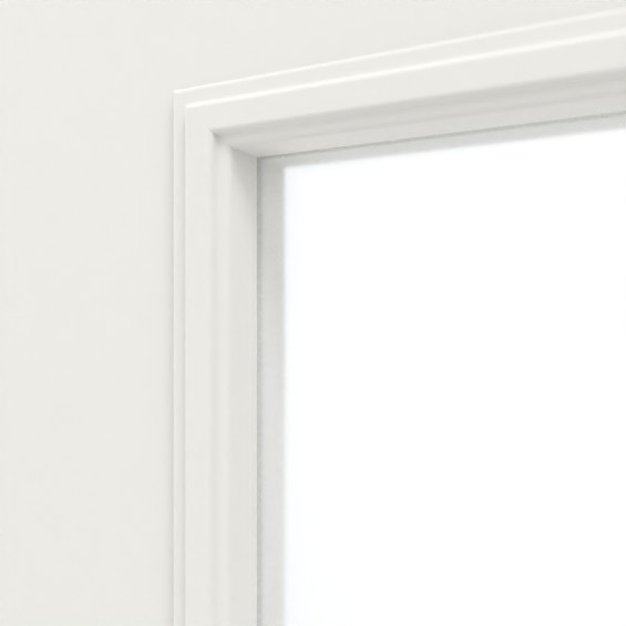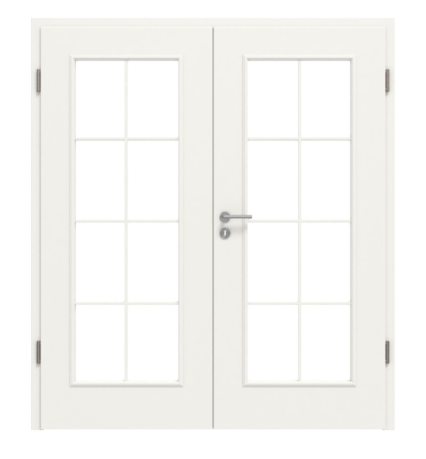 Przyjazne i jasne otoczenie to zasługa przeszklenia. Szprosy i listwy profilowe nadają skrzydłu drzwiowemu klasyczny wygląd. Powierzchnia zyskuje wspaniały połysk dzięki wysokiej jakości białej powłoce lakierowanej w kolorze RAL 9010 lub RAL 9016 do wyboru.