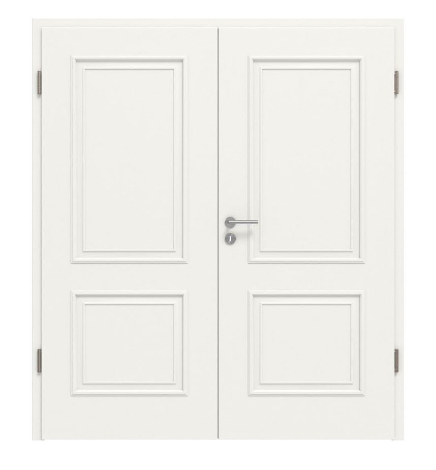 Stylowe listwy profilowe nadają podwójnemu skrzydłu drzwiowemu klasyczny wygląd. Dzięki lakierowanej na biało powierzchni w kolorze RAL 9010 lub RAL 9016 uzyskano elegancki design drzwi, które pasują do każdego pomieszczenia mieszkalnego.