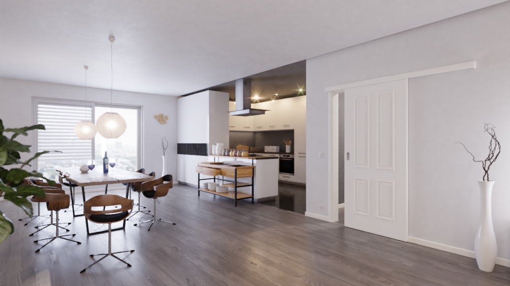 Biała drzwi przesuwne Georgia 4 z odporną na brud powłoką lakierniczą: