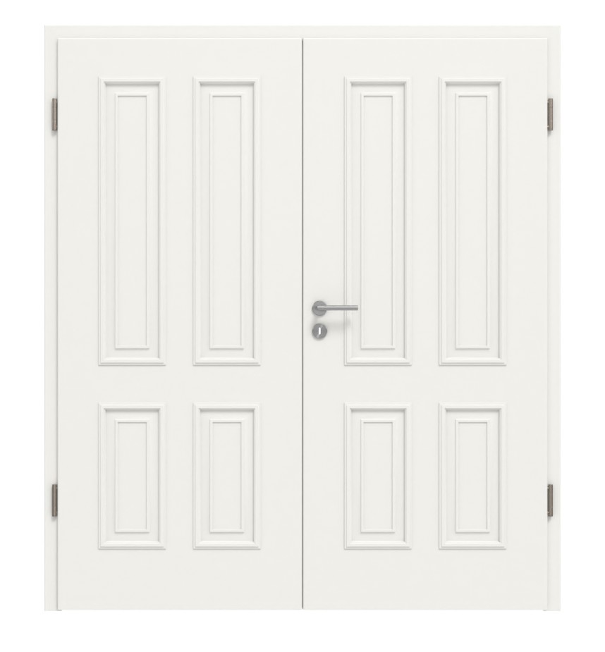 Wysokiej jakości białe wykończenie lakierem w kolorze RAL 9010 lub RAL 9016 nadaje podwójnemu skrzydłu drzwiowemu wspaniały połysk. Eleganckie listwy profilowetworzą klasyczny wzór.