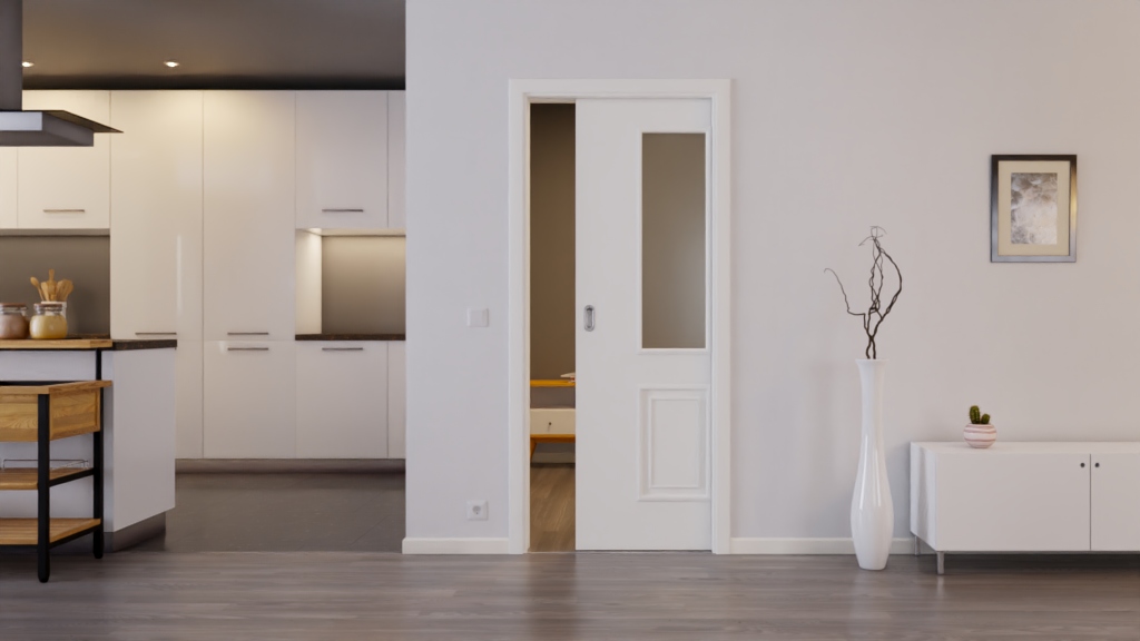 Jasne drzwi przesuwne Georgia 5 LA z łatwą w pielęgnacji powłoką lakierniczą: