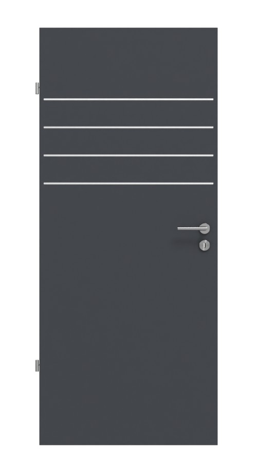 Drzwi składają się z dwóch elementów: Po pierwsze, ciemna powierzchnia stanowi modny element wystroju wnętrz. Z drugiej strony w górnej części skrzydła drzwiowego znajdują się cztery lizeny , biegnące w poziomie.