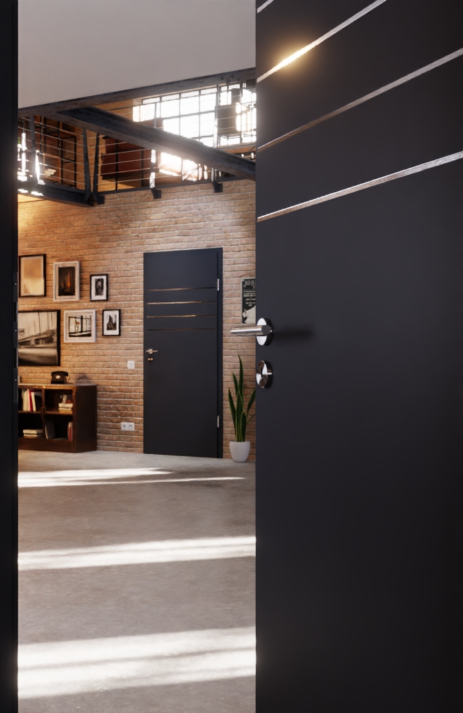Estetyka i funkcjonalność w przystępnej cenie: Dzięki drzwiom wewnętrznym 4.13 z powierzchnią CPL w kolorze grafitowym podobnym do RAL 7024 firmy Classen zyskasz minimalistyczną elegancję.