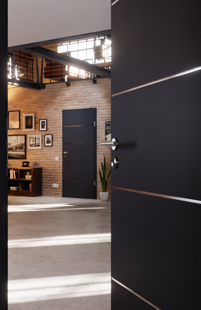 Dzięki gładkiej, ciemnej powierzchni drzwi Classen upiększą Twoje wnętrze. Cztery lizeny biegnące wzdłuż są równomiernie rozmieszczone na całym skrzydle drzwiowym.