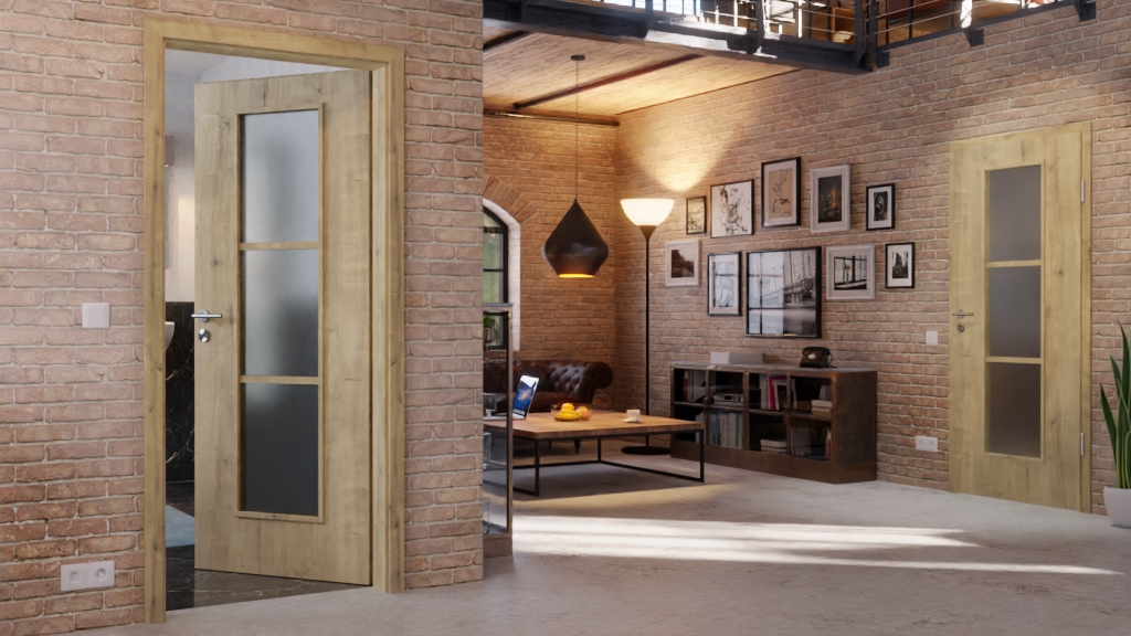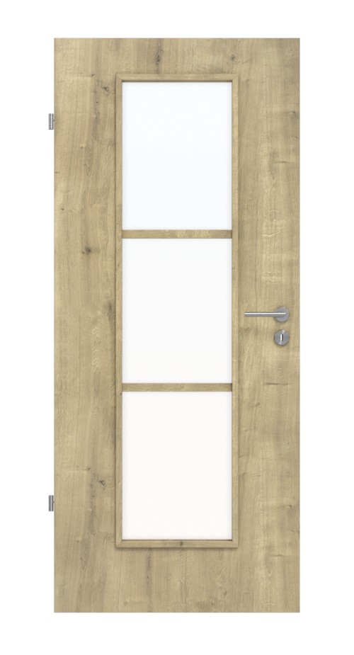 Dekor dębowy zachwyca naturalnością i rustykalnością. Grube słoje i sęki tworzą żywy wygląd. Dodatkowo, trzyczęściowy, centralny przeszklenie przepuszcza światło. Odpowiednie przeszklenie jest już wliczone w cenę.