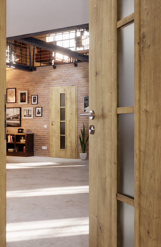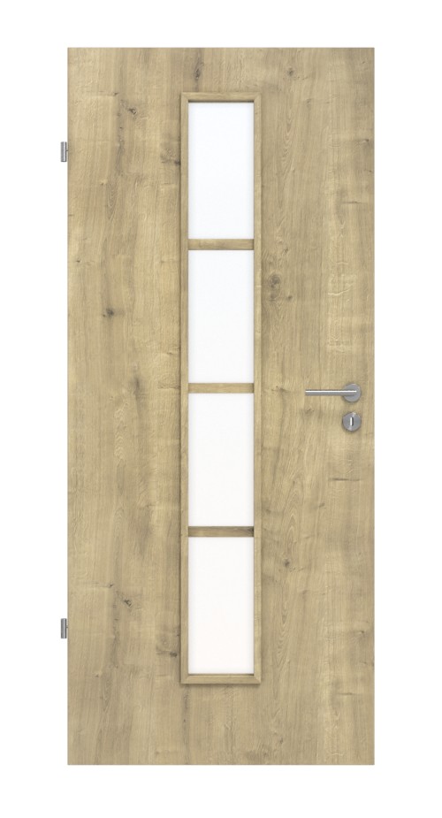 Grube słoje i sęki charakteryzują rustykalny dekor dębowy. Subtelne przeszklenie wprowadza jasność do Twojego domu. Masz wybór między przezroczystym szkłem lub szkłem matowym.