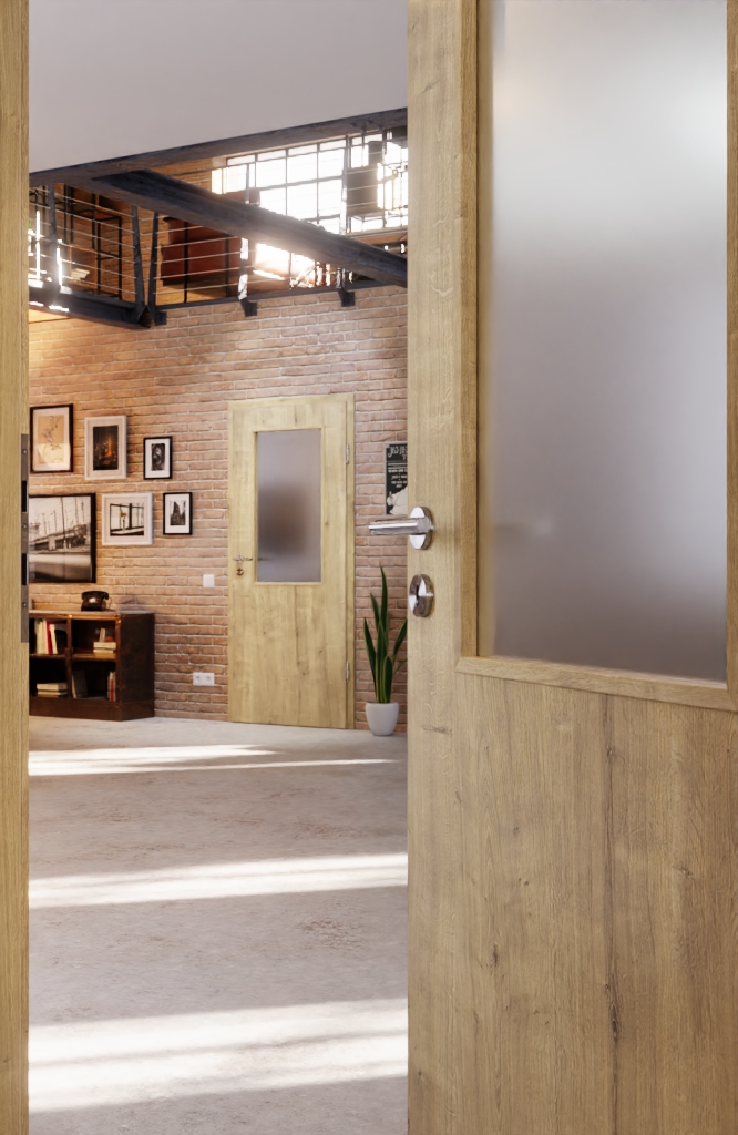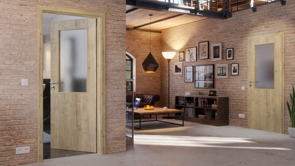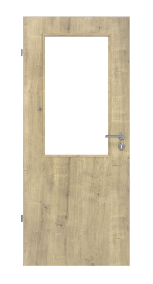 Grube słoje i sęki charakteryzują rustykalny dekor dębowy. Przeszklenie na wysokości oczu wprowadza jasność do Twojego domu. Masz wybór między przezroczystym szkłem lub szkłem matowym.