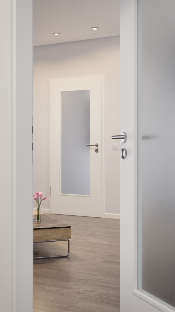 Niedrogi model drzwi z jasną warstwą lakieru: Oprócz swojego adaptacyjnego designu, drzwi wewnętrzne 4.17 lakierowane na biało podobne do RAL 9003 wyróżniają się przystępną ceną.
