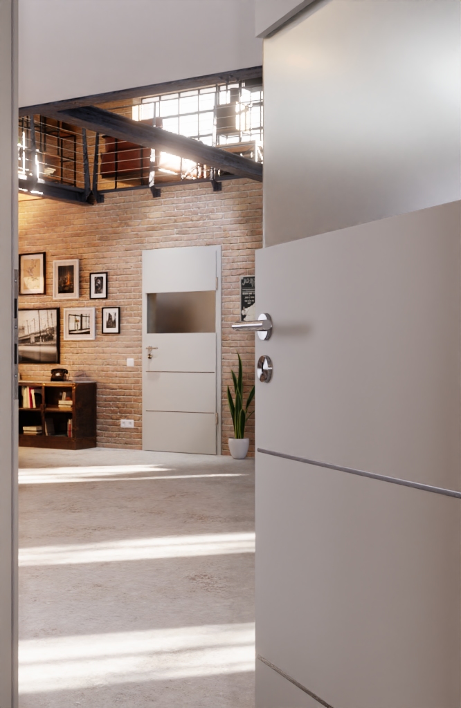 Z drzwiami Lineo w jasnoszarym kolorze od producenta drzwi Westag doświadczysz drzwi o maksymalnym wpływie na przestrzeń i liniowej estetyce: