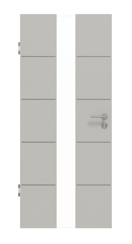 Dzięki powierzchni CPL w jasnoszarym kolorze otrzymujesz trwałą warstwę wierzchnią. Możliwości konfiguracji wypełnienia drzwi niemal nie mają ograniczeń.