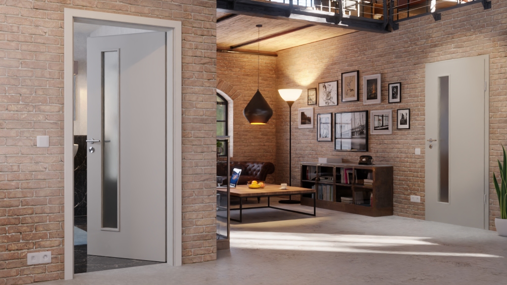 Dzięki wariantom szklanym od przezroczystego do matowego uzyskasz odpowiedni widok do swoich pomieszczeń. Listwy są kolorystycznie dopasowane do drzwi.